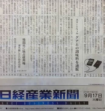 2013年9月17日の日経産業新聞(7面)に弊社の紹介記事が掲載されました。
